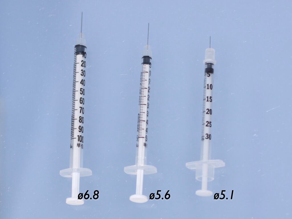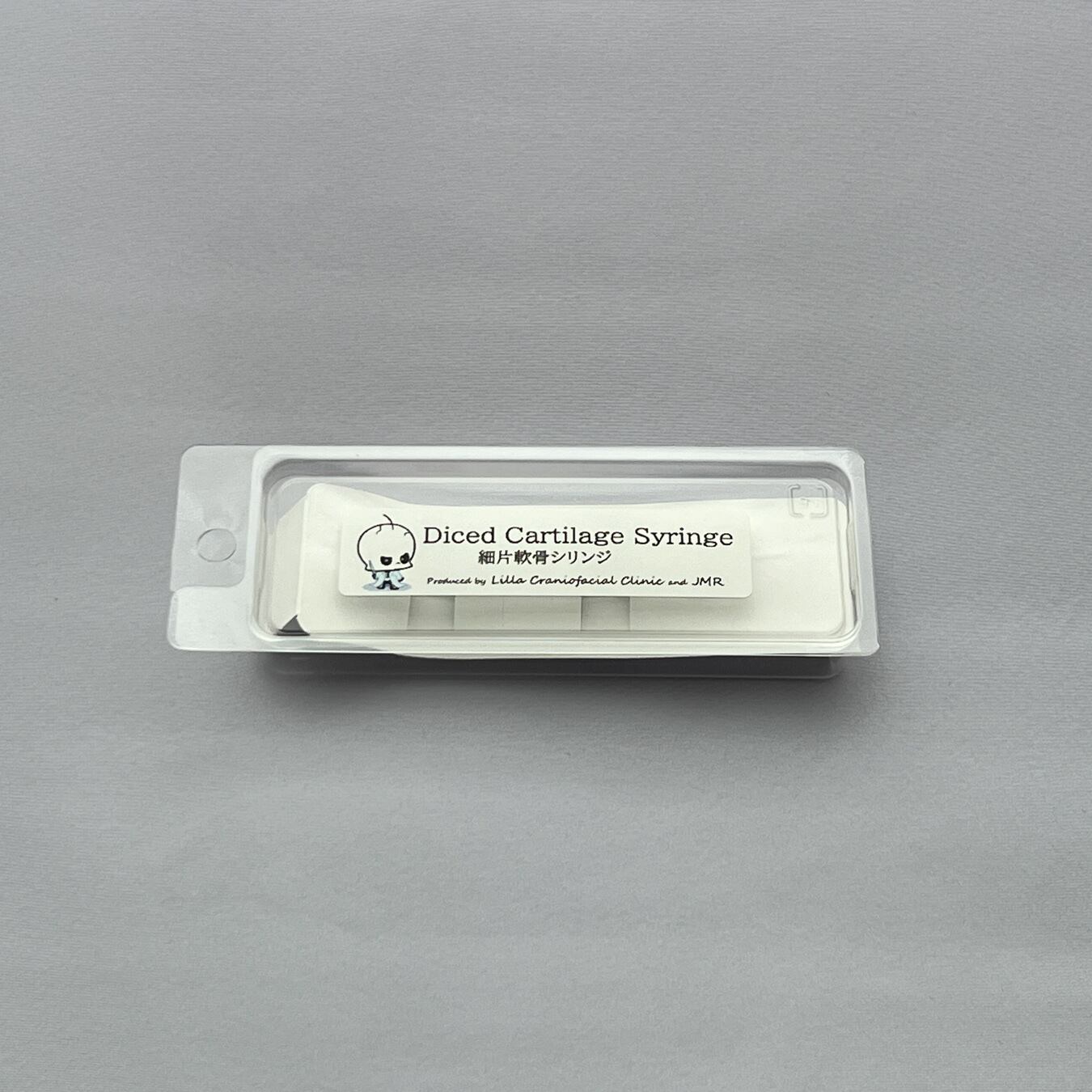 細片肋軟骨,ミル細片肋軟骨を装填して注入に使用します.内容量は0.5cc.注入量が分かるように0.1cc 毎に目盛りが入れてあります.