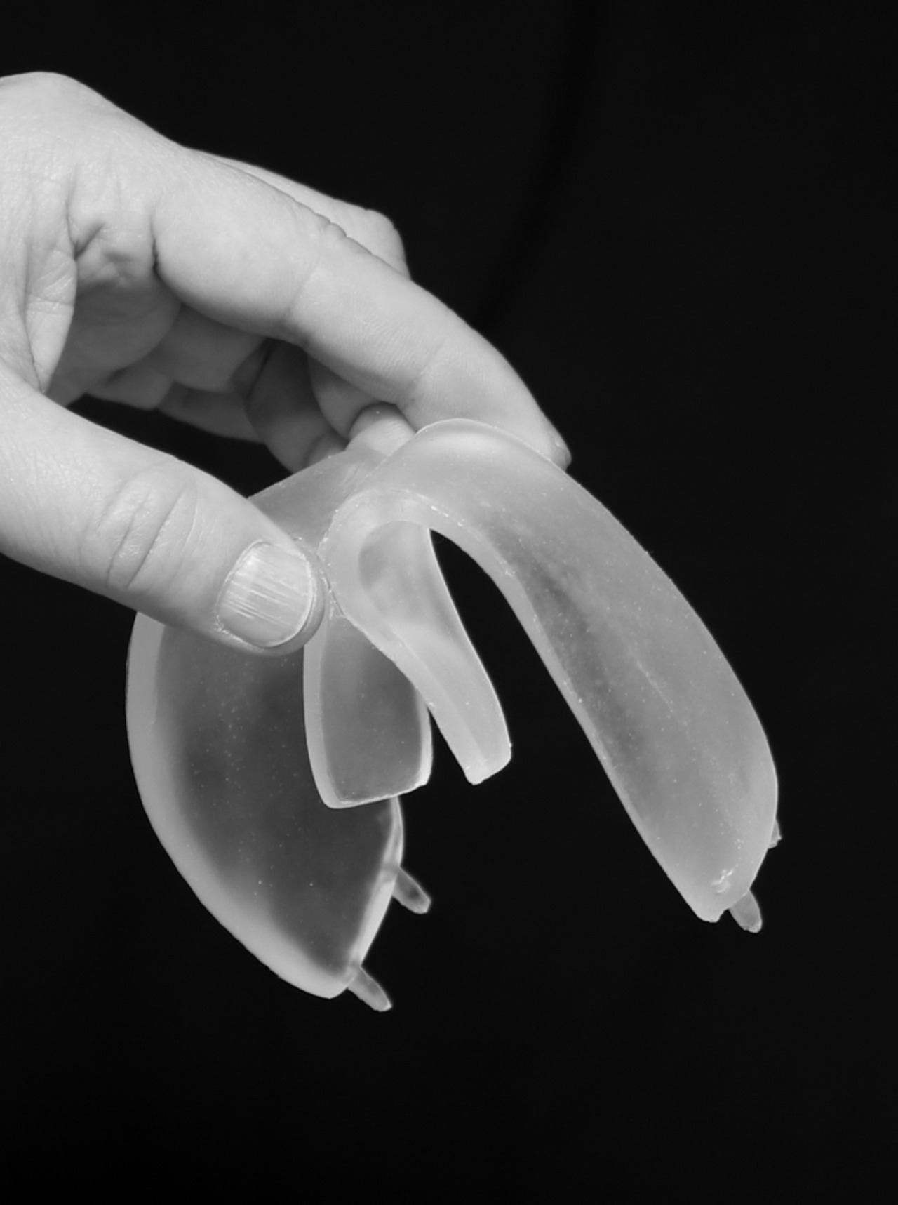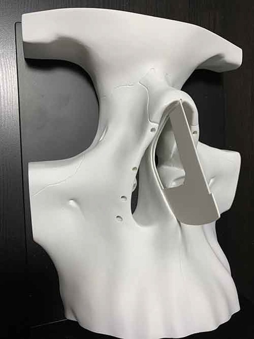 上外側鼻軟骨、鼻翼軟骨、鼻中隔軟骨の3種類のパーツが付属しており、それぞれを取り外して加工することができます。具体的な病態を模倣でき、患者への説明や医療従事者の教育に役立ちます。